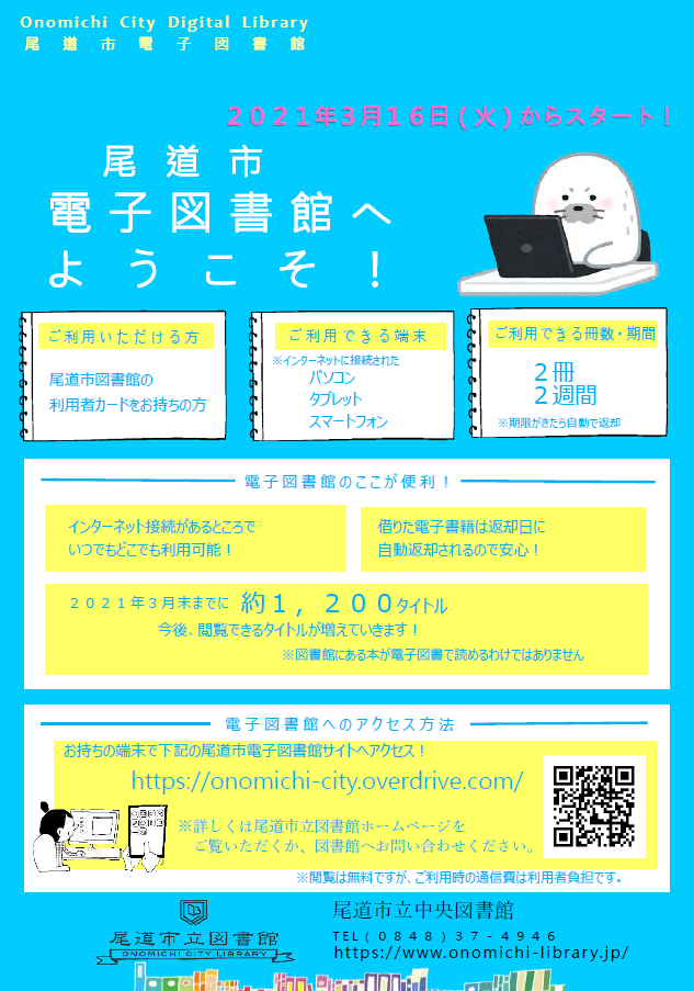 令和3年3月16日(火曜日)から尾道市電子図書館サービスが始まりました。